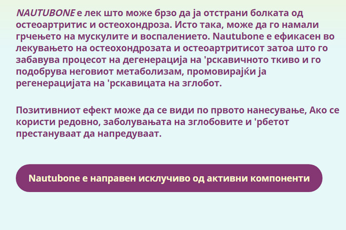 Ако сте уморни од трпење на болки во зглобовите и сакате да живеете активен живот, купете Nautubone. Вашите зглобови ќе ви се заблагодарат.