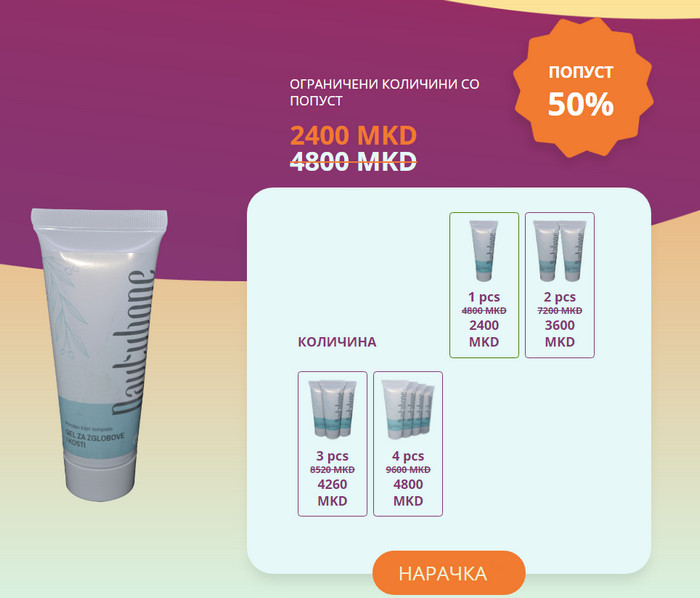 Кога грбот или колената ве болат, може да биде тешко да работите или да играте. Болните точки постојано потсетуваат на себе, но кремот Nautubone многу брзо ќе го запре нападот и ќе започне со лекување на проблематичните области. Тој добро се справува со заеднички болести, кои претходно не прогонуваа ниту ден ниту ноќ. Престанете да страдате и ќе потрошите сè поголеми количини на следните бескорисни лекови од Македонија аптеки. Подобро е да изберете докажан лек кој помага во различни фази на болеста – а потоа ве чека закрепнување!
